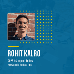 At NewSchools Venture Fund, Rohit Kalro is helping codify key metrics and integrate data more deeply into day-to-day decision-making, supporting strategic deployment of capital to back education entrepreneurs and innovative ideas. A second-time EP Fellow, Rohit holds a master’s degree in education policy and analysis from Harvard University and brings experience leading large-scale data analytics projects.