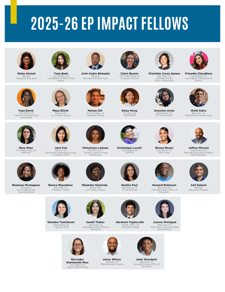 This cohort reflects EP’s commitment to placing experienced, mission-driven professionals where strong analytical, operational, and strategic capacity can make the greatest difference — and to building the leadership pipeline public education needs for the future.